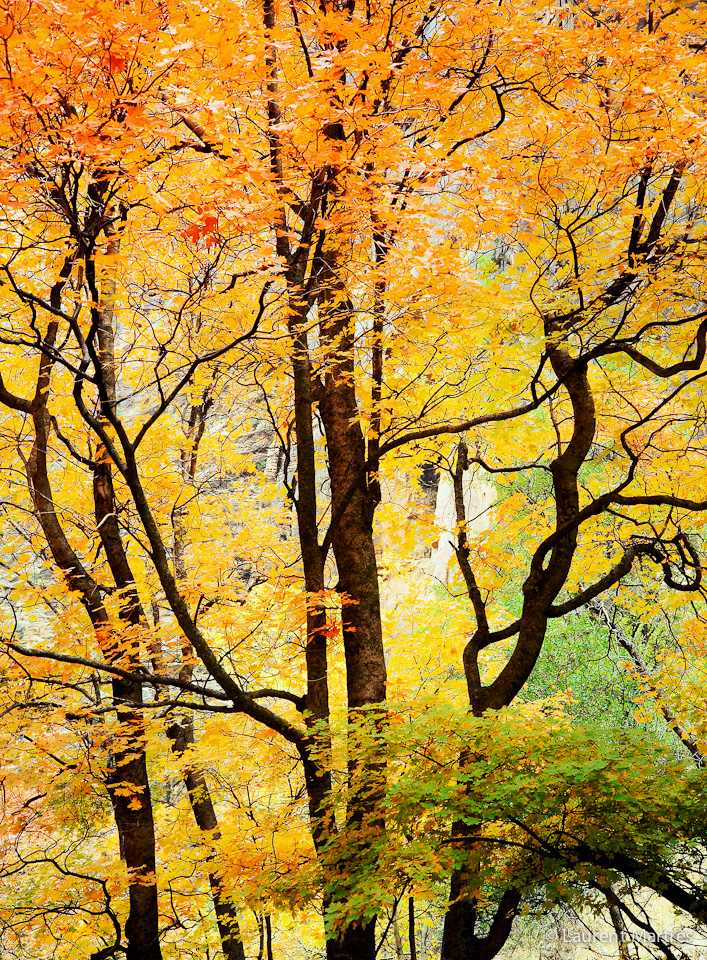 Rainy, overcast day makes colors sing during fall. Zion, UT